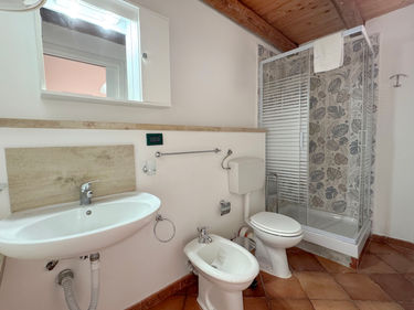 Appartamento San Vito is located in the center of Terrasini, in Giuseppe Mazzini Street. The apartment, located on the third floor of a four-story building, has a living room with an American kitchen, a bedroom, and a roof terrace. The main square is 5 minutes away and the beaches are 10 minutes away. A few steps away are a supermarket, a pastry shop, a pizzeria, bars, a greengrocer, boutiques, and a pharmacy. The terrace offers a magnificent view of the Sicani Mountains surrounding the city. An equipped kitchen, microwave, coffee maker, washing machine, towels, bed linen, internet, TVs, and air conditioning are provided. Parking is free on the street.